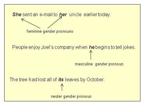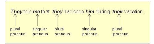 singular (I me my mine you your yours he him his she her hers it its) Examples