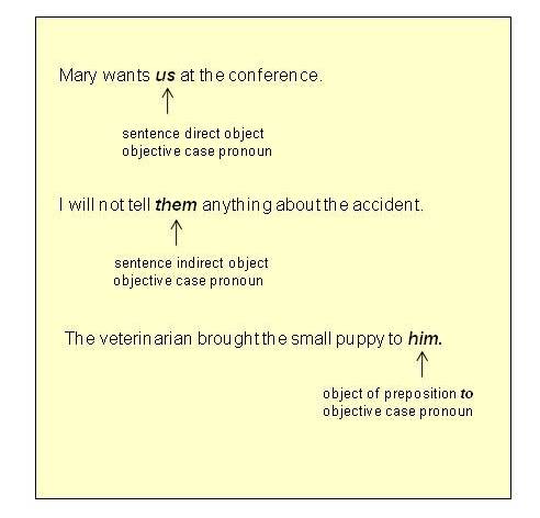 NOTE: Because of pronoun case, the pronoun's form changes with its function in the sentence. Follow this link to pronoun case for more information.